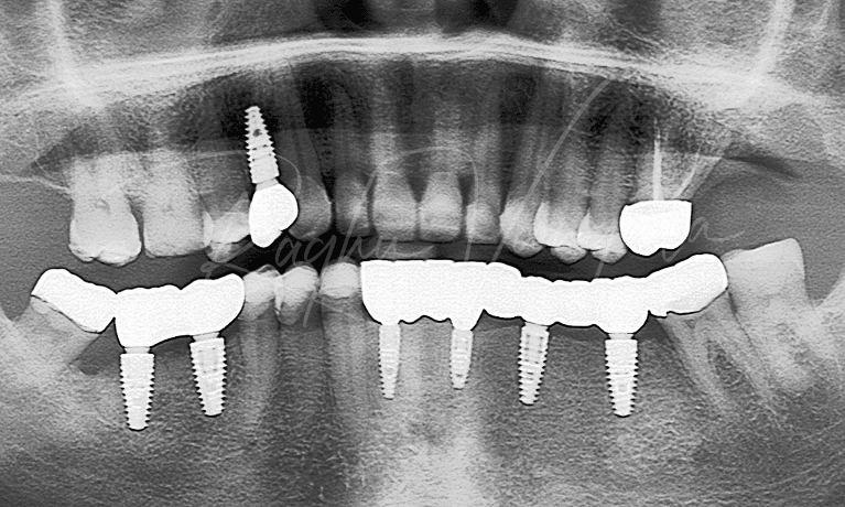 After a few extensive consults and lots of planning with x-rays, photos and scans, we were able to show the patient what the finished product could look like with a 'mock-up'. The patient was happy so Dr Raghu and team started with temporary work on the top jaw, which included 2 bridges. A few days later the patient came back for the temporary work on the lower jaw, with one bridge as well as crowns. Temporaries were necessary as this patient ...