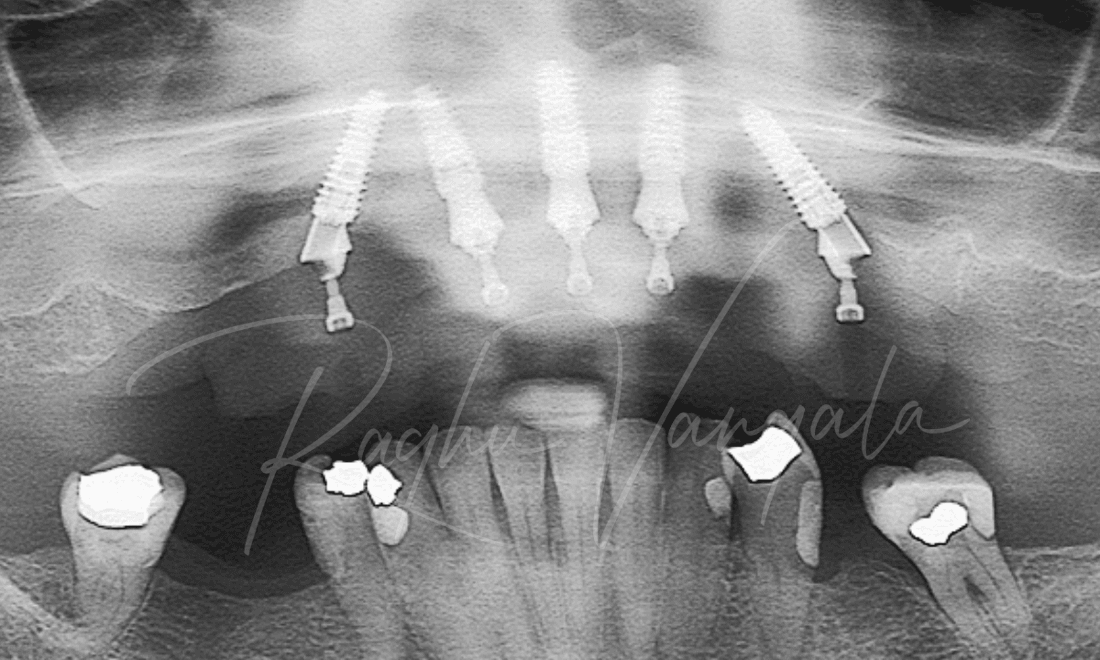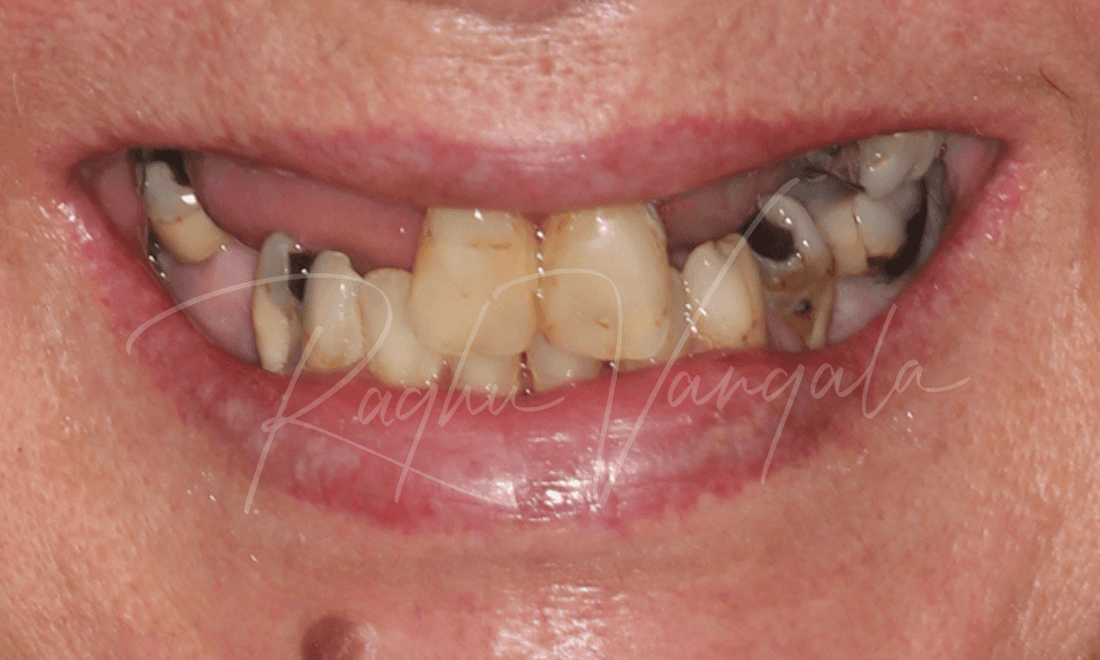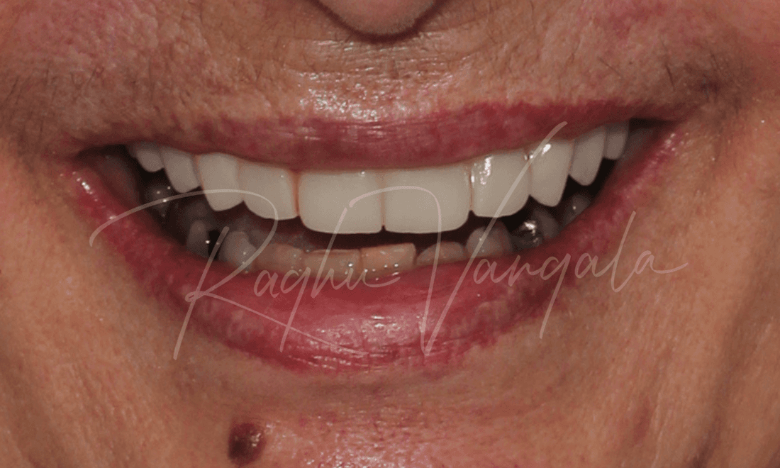 This lovely lady came to us wanting options to have a beautiful smile again. She had a partial upper plate and a few teeth left on her upper jaw. She wasn't a fan of her partial plate as it didn't feel right in her mouth. Her options for her upper teeth were to either get an upper denture or get implants and get a fixed denture. She decided to go with the permanent option, this consisted of getting her remaining upper teeth out and placing 5 implants. We then placed her upper denture a week later. She is very happy with the results and is now smiling like she was when she was younger.