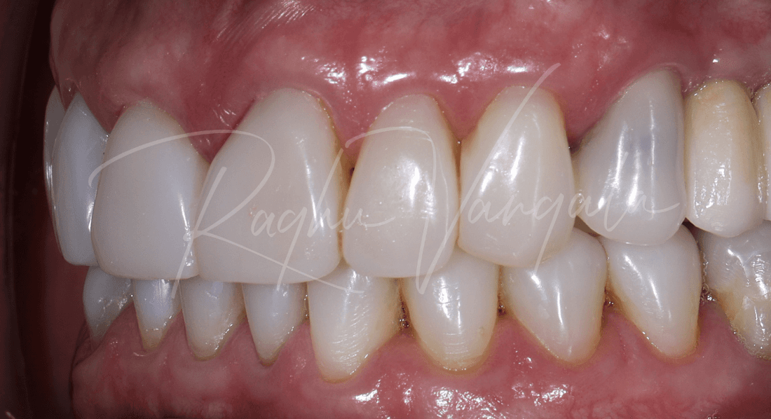Dr Raghu showed this patient some examples of similar work using photos and 3D printed models. Dr Raghu gave the patient the option of a 'mock up' to see what the end result would look like before we started any treatment, patient went ahead with this.